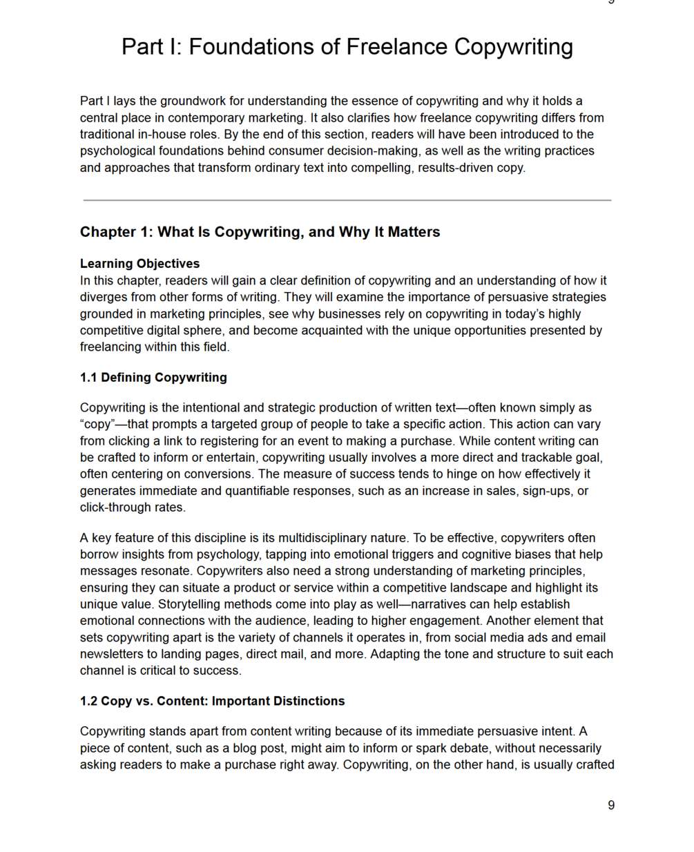 What You’ll Get in a Nutshell A 76-Page, Step-by-Step Copywriting Guide Packed with proven frameworks, persuasive writing techniques, and real-world examples—updated and refined to fast-track your success. Practical Tools & Templates Gain proposal, pitch, and onboarding templates you can instantly apply to boost client conversions and command higher fees. Actionable Strategies to Earn More in Less Time Discover how to bring in an extra $440/week (or more) while maintaining balance—thanks to focused, results-driven methods. Exclusive Bonuses Get the “Proposal Template Blueprint” and the “Objection Crusher” Swipe File at no additional cost—perfect for overcoming client pushback and securing premium gigs. New, Limited-Time Price: $23.97 Grab it now before it returns to its original $49.99.